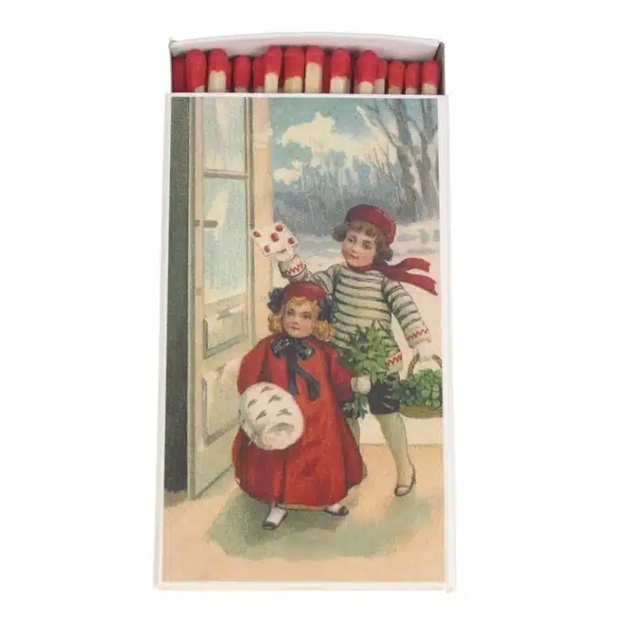 Découvrez les Allumettes Filles et Houx, parfaite pour poser au coin de la cheminée ou à côté de vos bougies pour apporter l’ambiance de Noël.