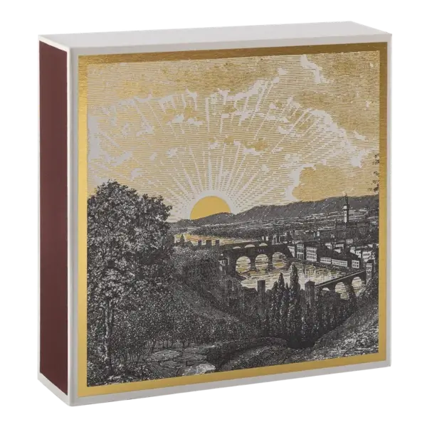 Chaque boîte contient environ 125 longues allumettes de qualité. Elles sont parfaites pour allumer bougies parfumées, encens ou cheminée. Grâce à leur format pratique, ces allumettes deviennent un accessoire déco original à poser sur une table basse, une étagère ou un rebord de cheminée. Le contraste entre le noir et blanc du paysage et les touches dorées du soleil crée un objet harmonieux et élégant, apportant chaleur et sophistication à votre intérieur.