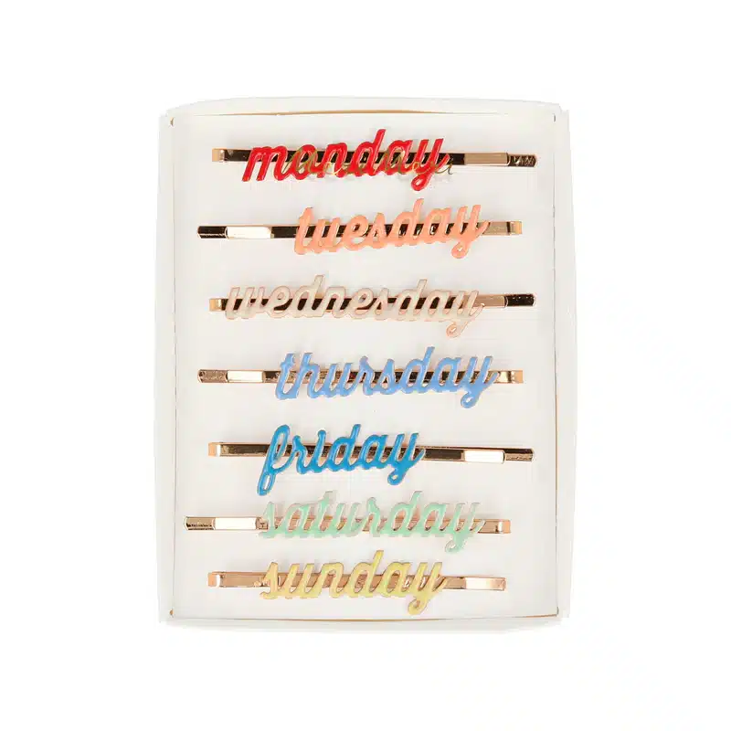 Donnez une allure élégante à vos cheveux chaque jour grâce à ces magnifiques barrettes de cheveux Enamel Week Day. Fabriqué avec soin à partir d’émail coloré pour un style raffiné. Idéal pour un petit présent ou à glisser dans des sacs de fête.