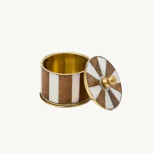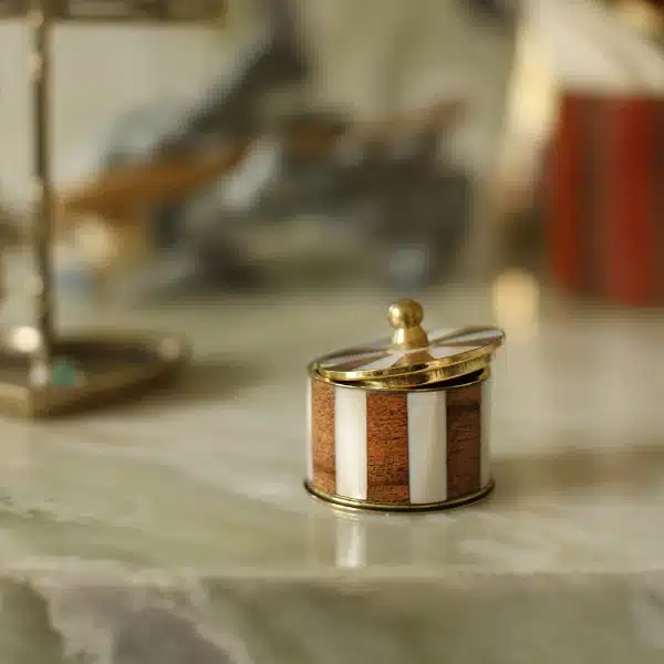 La Boîte de Cirque Bailey bois incarne un mélange magistral entre l’attrait rustique et la praticité moderne. Cette pièce de rangement unique, façonnée avec soin, témoigne d’un savoir-faire artisanal d’exception. Sa structure combine harmonieusement le laiton, la résine et le coquillage véritable, créant un contraste visuel saisissant qui réchauffe votre décoration intérieure. Sa forme de chapiteau miniature apporte une note de fantaisie équilibrée par la noblesse des matériaux naturels.