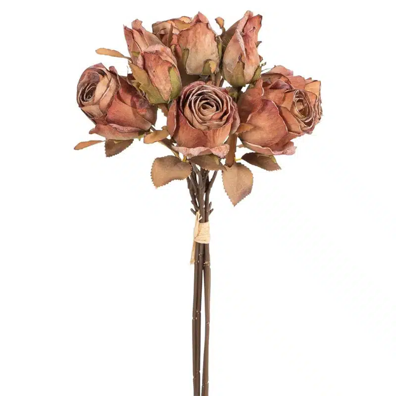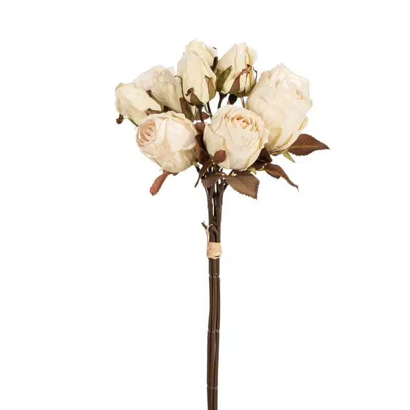 Découvrez le Bouquet de Roses Anciennes artificielles, disponible en coloris Crème ou Vieux Rose foncé.