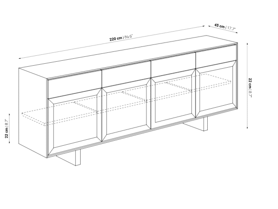 Dimensions : L220 x L45 x H22 cm