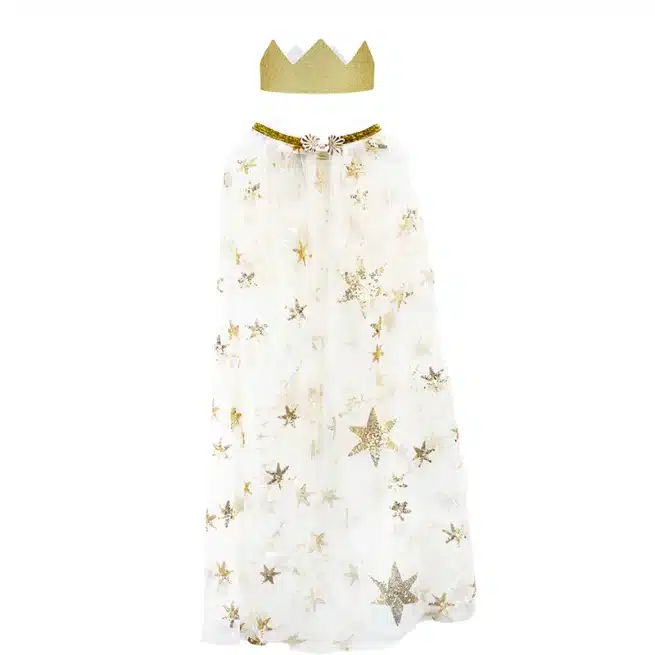 Découvrez la Cape Étoile Or, que tu organises un grand bal royal, que tu explores les mystères de ton château ou que tu t’amuses simplement à la maison, ce Kit Déguisement va te faire vivre des aventures inoubliables !