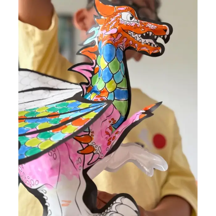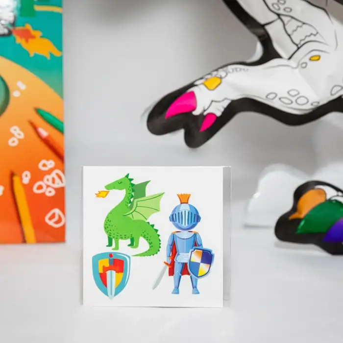 Découvrez le Coloriage Gonflable Dragon et Tatoos d’Ara Creative. Explorez notre incroyable Créart Dragon géant, un coloriage gonflable qui transportera vos enfants dans un univers fictif débordant de magie et d’aventures. Ils auront l’opportunité de colorier un dragon redoutable dont la seule tâche est de s’en prendre à un château gardé par un courageux chevalier. Une fois achevé, gonflez-le pour insuffler la vie à cette fascinante épopée. Faites découvrir à vos enfants une aventure créative mémorable grâce au Créart Dragon !