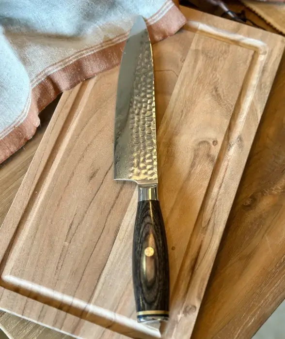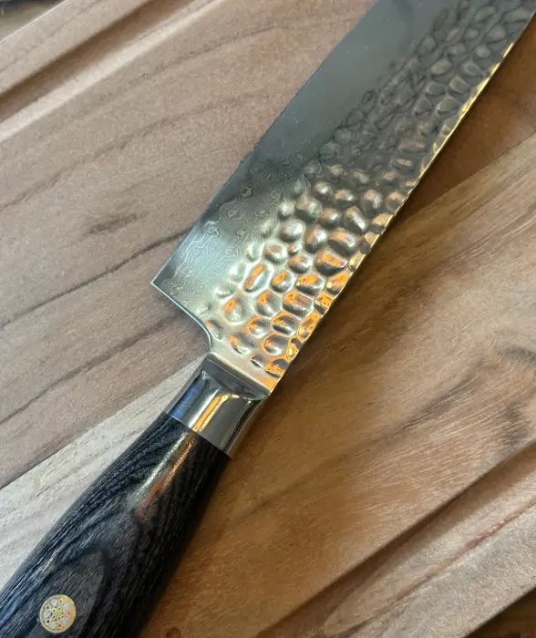 Découvrez le Couteau de Cuisine CHEF 20, en acier damassé et martelé.