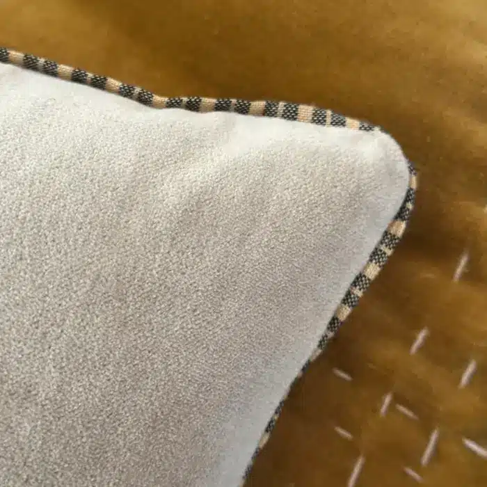 Le dos est en coton de coloris uni, pour un rendu sobre et naturel à l’arrière. Une fermeture éclair discrète assure une finition soignée et pratique. La housse est vendue sans garnissage, ce qui permet de choisir selon vos préférences de moelleux.