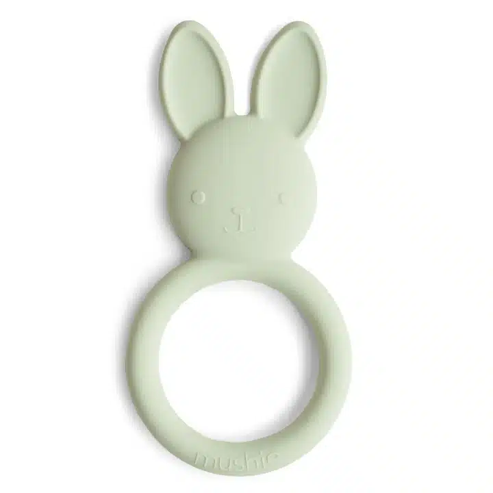 Découvrez le Jouet de Dentition en Silicone de Mushie, disponible en différentes formes et couleurs.