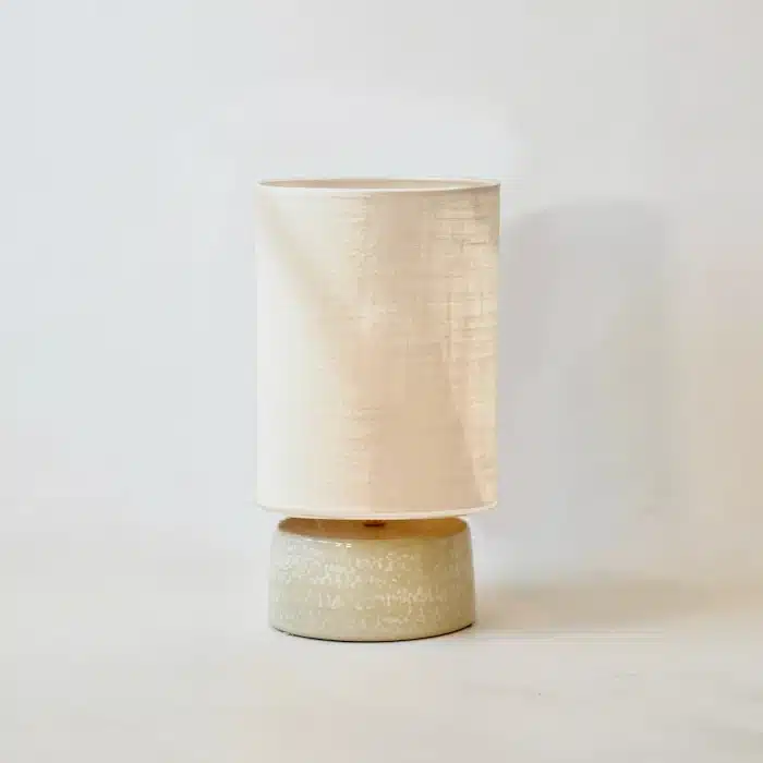 Cette lampe de table se distingue par son design épuré et ses matériaux naturels. Le pied en céramique, façonné avec soin, offre une texture douce et un aspect organique. Sa teinte lumineuse diffuse une sensation de sérénité. L’abat-jour blanc en jute complète parfaitement la base, filtrant la lumière pour créer une ambiance tamisée et accueillante.