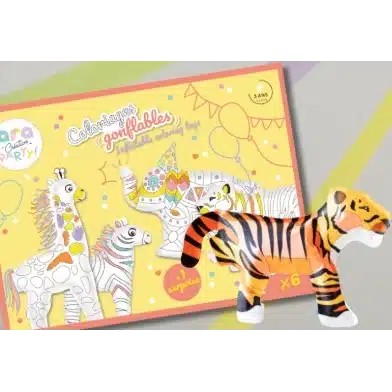 Découvrez le Pack Coloriages Gonflables Safari d’Ara Creative. Pour des célébrations extraordinaires inspirées par la faune sauvage, explorez le pack Safari dès à présent. Ce coffret, dédié au thème du safari, offre une expérience artistique et ludique pour divertir les jeunes aventuriers. Explorez 6 dessins à colorier en relief mettant en scène des compagnons sauvages de la savane : la girafe, le zèbre, l’éléphant et le tigre. Les jeunes artistes auront la possibilité d’explorer leur créativité tout en façonnant des souvenirs mémorables. Une fois coloriés et gonflés, ces Créarts se transformeront en compagnons de jeu parfaits pour des célébrations exceptionnelles.