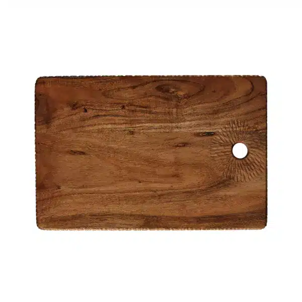 Cette planche est soigneusement fabriquée à la main. Elle est en bois d’acacia certifié FSC. Le bois d’acacia est une matière réputée pour sa durabilité. Son grain est marqué et ses teintes sont chaleureuses.