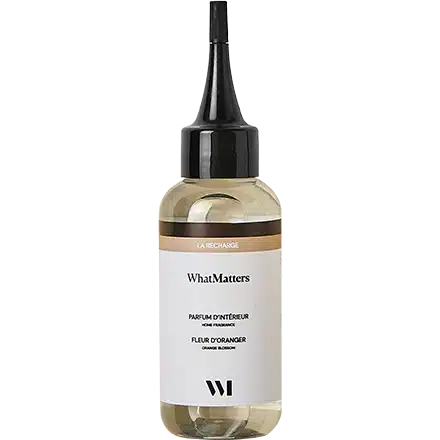 N’attendez plus pour adopter la Recharge Parfum d’intérieur Fleur d’Oranger de chez What Matters. Elle vous permet de continuer à profiter de votre parfum d’ambiance favori de manière économique et écologique.