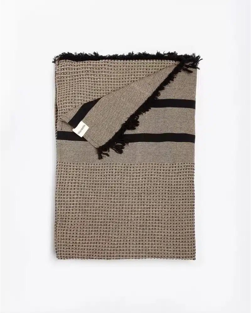 Découvrez la Serviette Chennai Biscuit disponible en deux tailles (100×200 et 180×200 cm). Elle est en Coton gaufré, ce qui ajoute un touche d’élégance à la serviette.