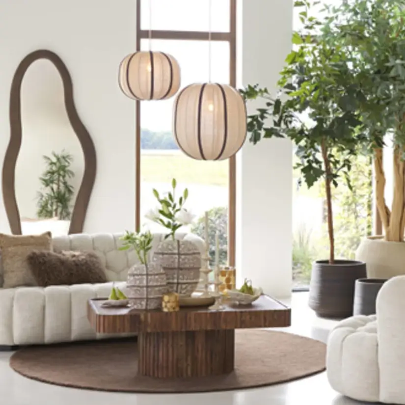 La force de la suspension en tissu ESMIRIA réside dans sa capacité à apporter une sensation de légèreté et de volume à votre espace. Grâce à sa structure légère et son matériau noble, elle flotte avec grâce au-dessus d’une table de repas, attirant le regard par sa finesse. Sa palette de couleurs neutres lui permet de s’associer facilement avec d’autres matières naturelles comme le bois ou le lin, renforçant ainsi l’esprit authentique de votre foyer. Elle devient rapidement la pièce maîtresse d’un aménagement réussi et serein.