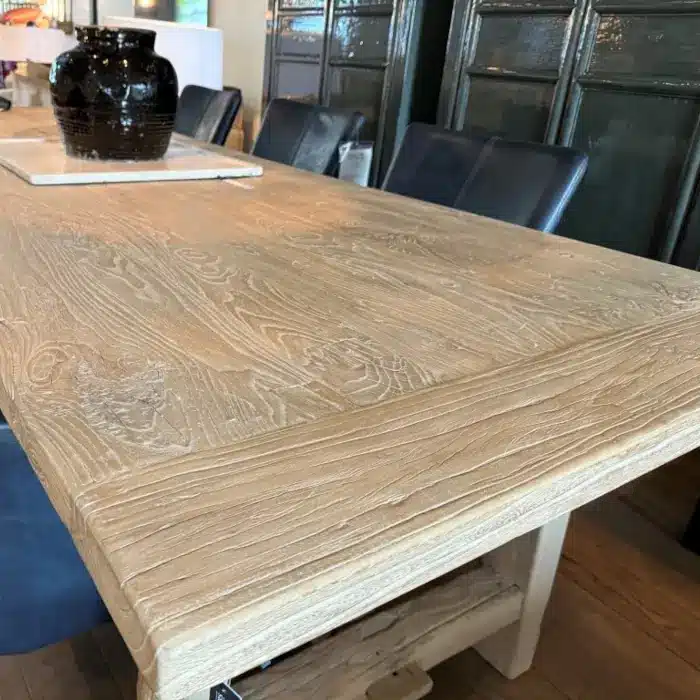 Vous intégrez cette table dans un décor moderne. Elle est parfaite dans un intérieur classique. Sa présence apporte immédiatement une atmosphère chaleureuse et accueillante. La solidité du bois d’orme assure une surface de travail ou de repas fiable pour de nombreuses années.