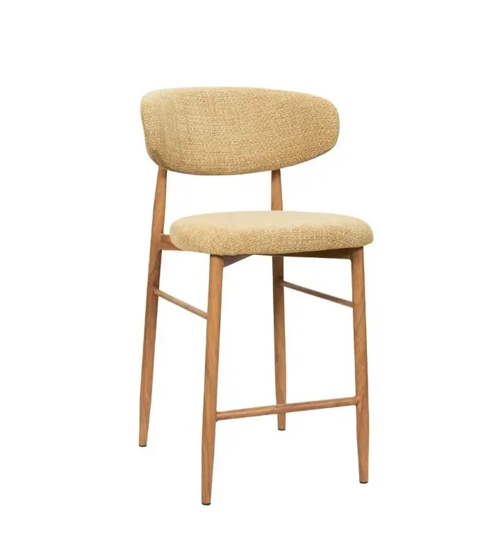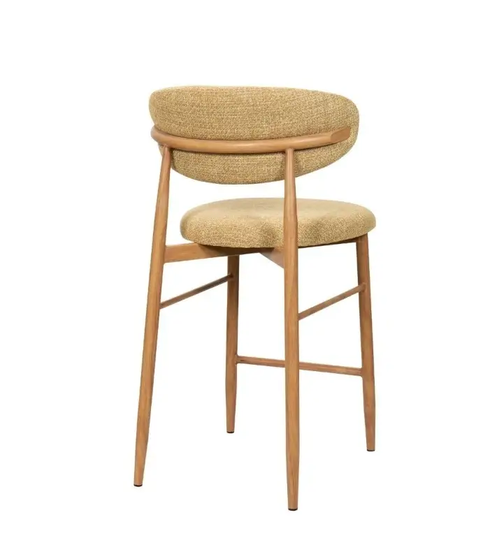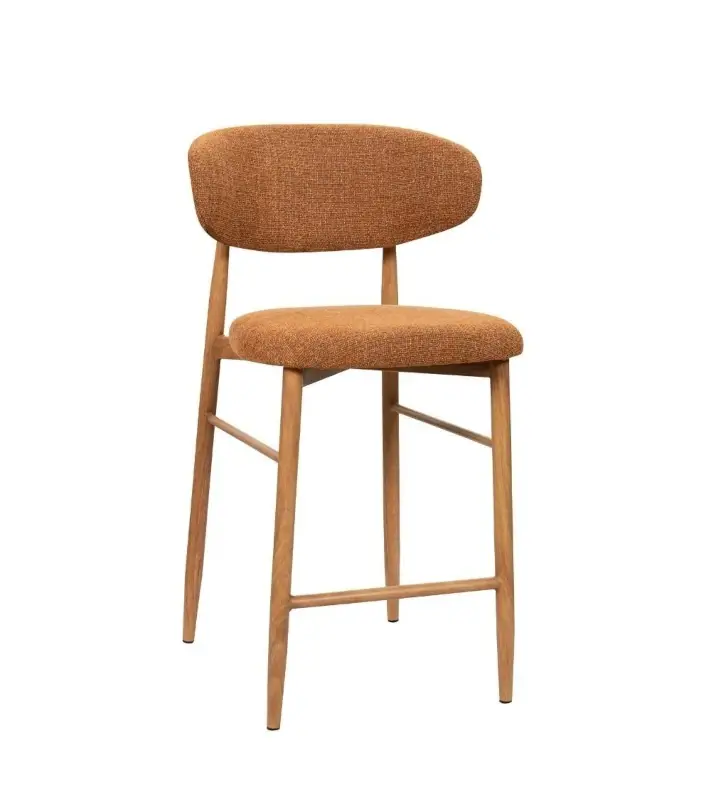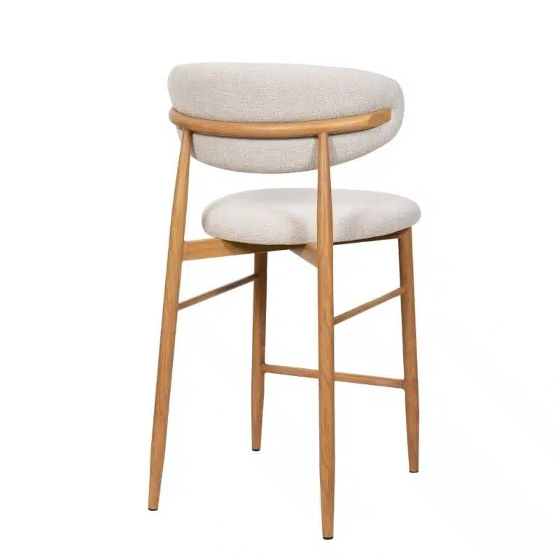 Les pieds du tabouret sont en métal. Leur finition en imitation bois est un détail élégant. Elle offre la robustesse du métal. Elle garde l’esthétisme chaleureux du bois. C’est une combinaison idéale de solidité et de style.