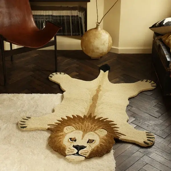 L’esthétique de ce lion majestueux repose sur un travail de texture remarquable. Une précision artisanale dessine sa crinière et son visage, donnant vie au personnage. Ce tapis tufté à la main ne se contente pas d’être beau ; il est le fruit d’un savoir-faire traditionnel qui privilégie la qualité des matières. C’est l’accessoire de décoration idéal pour ceux qui souhaitent affirmer leur personnalité et apporter une note d’humour et de poésie à leur aménagement intérieur.