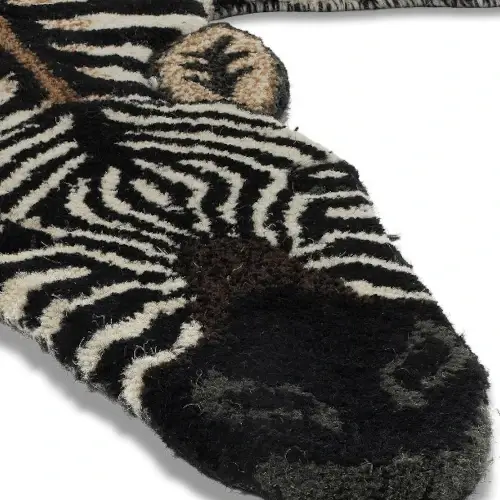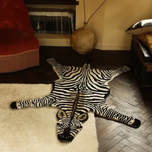 L’esthétique de ce zèbre repose sur ses rayures emblématiques qui dynamisent votre sol avec élégance. Sa silhouette originale brise les codes classiques de la décoration pour apporter une note de fantaisie assumée. Ce tapis s’intègre parfaitement dans une chambre d’enfant pour un esprit safari ou dans un salon contemporain. Sa texture dense offre un relief captivant qui accroche le regard. Vous transformez ainsi votre espace en un lieu de vie joyeux et plein de caractère au quotidien.