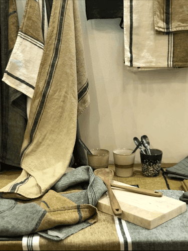 Découvrez le Torchon Lin Olbia avec bandes foncées, disponible en différents coloris sur notre e-shop.