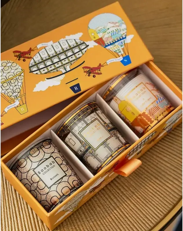 Découvrez le coffret Trio Travel Brussels-Roma-Saint Tropez de Baobab Collection, une véritable invitation au voyage et à la découverte. Conçu comme une échappée belle, cet ensemble de trois bougies rend hommage à des destinations emblématiques.